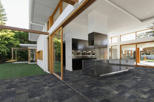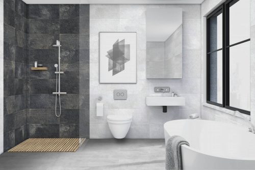 Keramická dlažba antracitové barvy – rozměr 30×60 cm má povrch v imitaci kamene. Dlažba je mrazuvzdorná a nerektifikovaná. K lepení dlažeb používejte mrazuvzdorné lepidlo, nabízíme BAUMIT BAUMACOL FLEX TOP C2TES1 nebo BAUMIT BAUMACO FLEX UNI C2TS1. Přesnější pokládku docílíte pomocí plastových spon a klínů, které můžete u nás také zakoupit.
